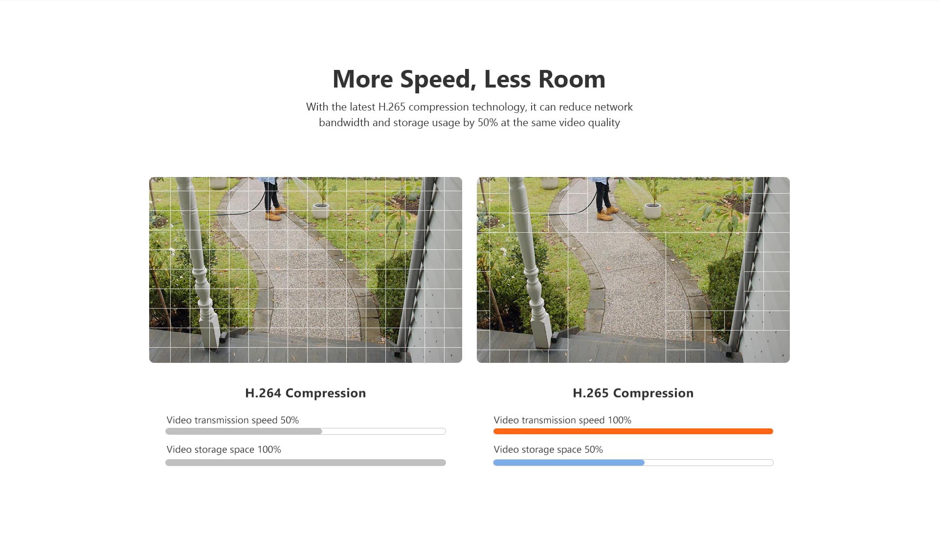 با این تکنولوژی شما میتوانید حدود 50 درصد فضای بیشتری نسبت به تکنولوژی H264 در اختیار داشته باشید.