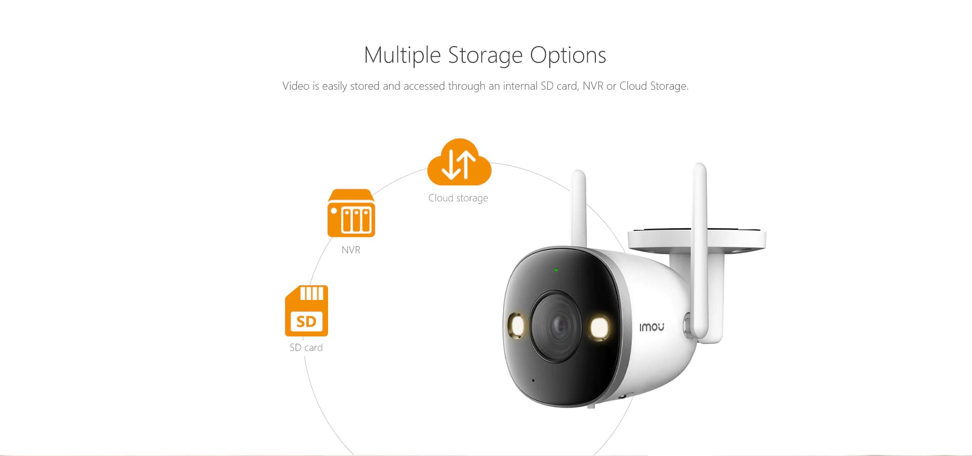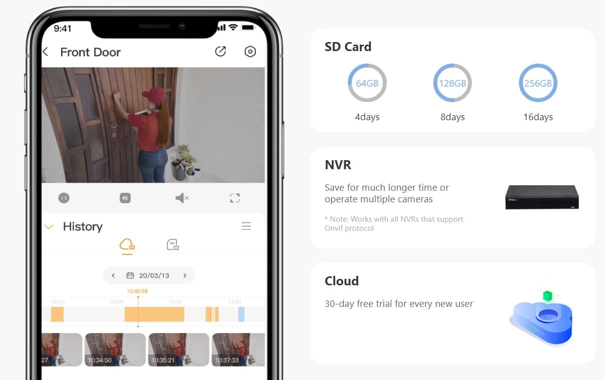 شرکت آیمو برای ضبط تصویر 3 راهکار ارائه کرده است 1-کارت حافظه تا حداکثر ظرفیت 256 گیگابایت 2-اتصال دوربین به دستگاه NVR (ضبط تصویر) 3-ضبط تصویر بر پایه ابری (این گزینه مستلزم خرید اشتراک ماهیانه و پرداخت حق اشتراک میباشد که با توجه به حافظه درخواستی مبلغ آن متغیر خواهد بود)